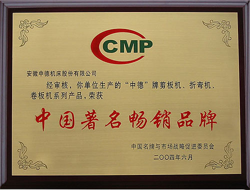 中德牌机床取得“中国闻名滞销品牌”声誉称呼