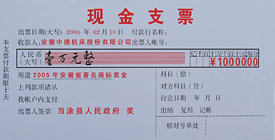 “中德机床”获当涂县2005年度“创建品牌奖”