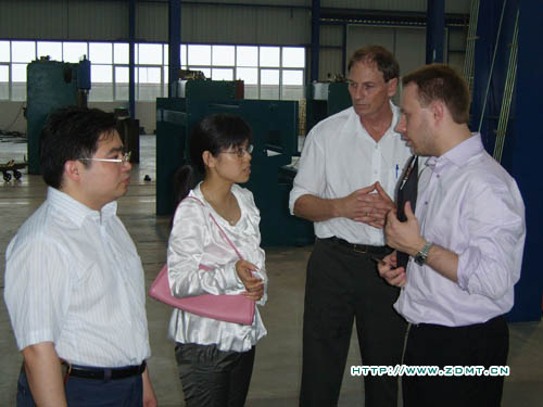 固然气候很是酷热,下战书还下起了暴雨,但这涓滴不影响他们观赏的热忱!稍作歇息后,Peter和Daniel 就迫不迭待的伴同公司带领及任务职员来到了咱们的大型拆卸车间,在这里,他们审阅的目光扫过每台机器,而后都对劲的点颔首。时代不时的向随行的任务职员发问,很是的当真,咱们的任务职员都耐烦的逐一解答。