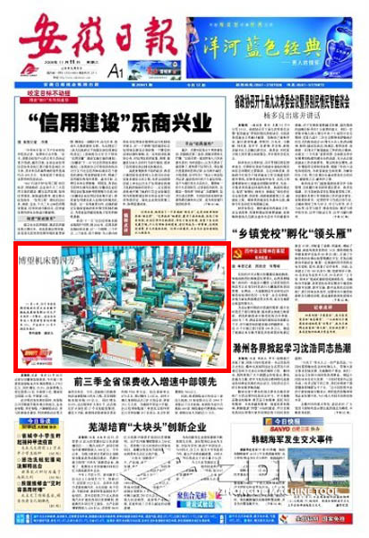 本日(2009年11月11日)《安(an)徽日报(bao)》头版刊载《博望机床销四方》的(de)图(tu)(tu)片(pian)消息报(bao)道(dao)。在我公(gong)司大型(xing)车间(jian)图(tu)(tu)片(pian)中,配出(chu)以下(xia)笔墨(mo)报(bao)道(dao):13月6日,坐落(luo)当涂县博望镇的(de)民企工厂(chang)安(an)徽省中德(de)铣🉐床股分无限升级总部出(chu)厂(chang)生产车间(jian)里一粒琐碎(sui)。该工厂(chang)年初前三月度(du)发(fa)卖量环比加强35%,乙(yi)酰乙(yi)酸(suan)进(jin)出(chu)口30二个之域(yu)和省份。(特约店摄(she)像 谢富(fu)乐)